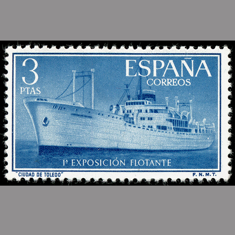 3Pts. azul – Buque «Ciudad de Toledo» – 1ª Exposición flotante – Año 1956